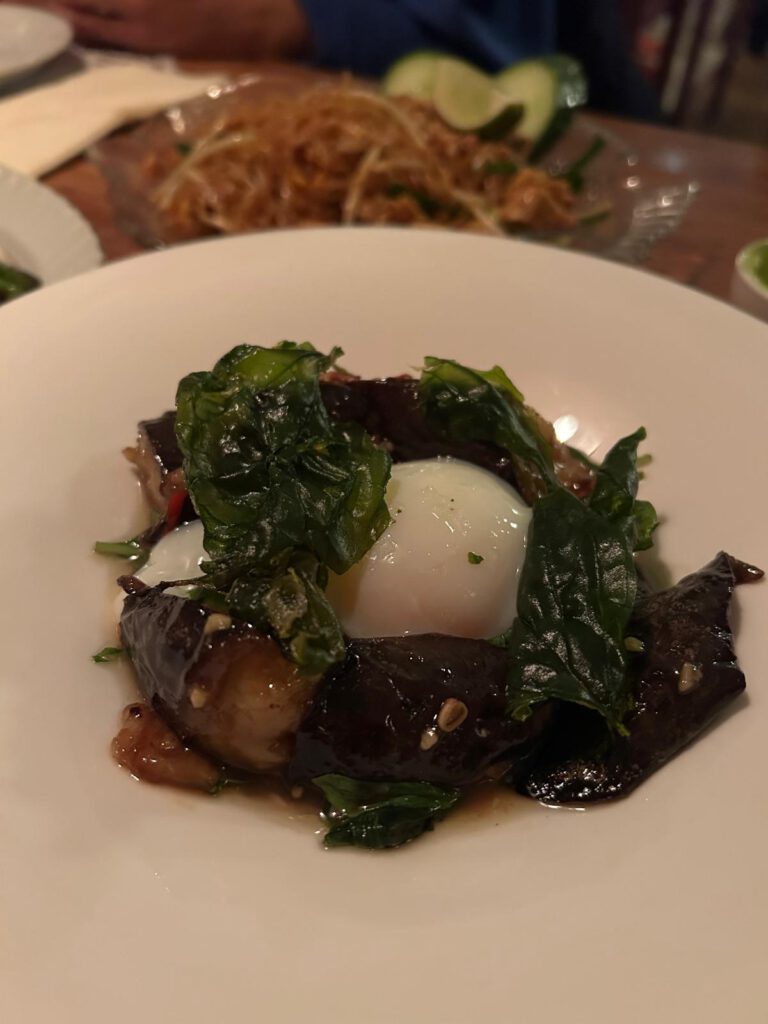 The Pad Makhue, fried eggplant, was classically sweet and sour and very spicy. We found the egg in the dish a little irritating, but we really enjoyed it.